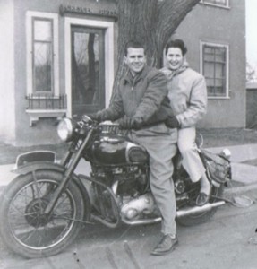 They fell madly in love, and Dad proposed. He sold his motorcycle for Mom’s engagement ring. That was romantic… but romantic wasn’t all he had to be to marry Grandma’s daughter! They had to save $500, which was tough to do when he made $111 a month. The second stipulation was, they couldn’t start their marriage living in one of the wartime houses that were so often shared; they had to have their own apartment.